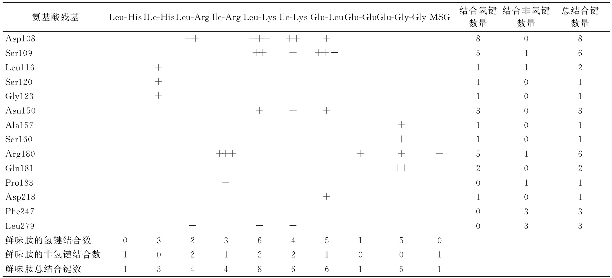 表6 鲜味肽与T1R1受体(A链)的结合位点及成键统计