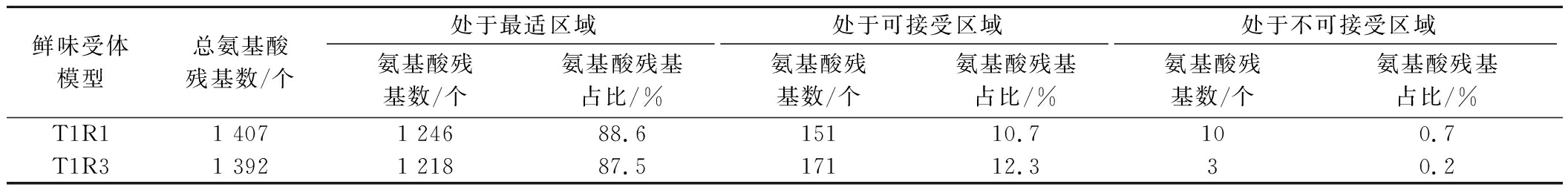 表4 T1R1、T1R3鲜味受体模型拉氏图的氨基酸残基构象统计