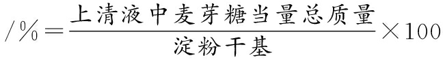 参考之前方法[13],取冻干后50 mg的花卷粉在15 mL的离心管中,然后加入10 mL的磷酸缓冲液(pH 6.0),混合均匀。接着,将其在沸水浴中处理30 min,然后降温并加入1 mL的40 U/mL的猪胰α-淀粉酶缓冲液,混合均匀并开始计时。在0、10、20、40、60、90、120、180 min时,分别取出100 μL的酶解液,并加入300 μL的0.5 mol/L的Na2CO3缓冲液以终止反应。然后在3 000×g的离心力下离心5 min,取上清液100 μL并加入到3 mL的PAHBAH溶液中(将250 mg PAHBAH固体溶于5 mL的0.5 mol/L HCL中,然后加入45 mL的0.5 mol/L NaOH)。在沸水浴中进行避光显色,然后在410 nm下测定吸光值。样品中释放的麦芽糖量反映了淀粉在各个时间点的消化程度,计算如公式(2)所示: