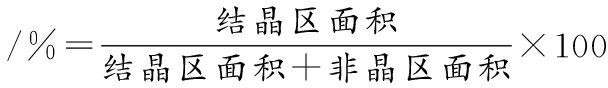 将新鲜花卷冷却并切成10 mm左右的薄片,装入自封袋,在4 ℃冰箱冷藏7 d后冻干磨粉备用。将花卷冻干粉在25 ℃下100%相对湿度室中平衡24 h,使用D8 Advance X-射线衍射仪,通过Cu-Kα辐射(波长为0.154 nm),在40 kV和40 mA的条件下进行测定。扫描的速率为2°/min,扫描范围为5°~35°(2θ)。使用PeakFit 4.12软件来计算样品的结晶区和非晶区的面积,样品的相对结晶度的计算如公式(4)所示: