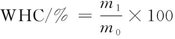 式中:WHC,持水率,%;m0,离心前鱼肉质量,g;m1,离心后鱼肉质量,g。