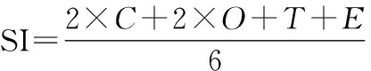 式中:SI,加权感官值,分;C,色泽的分值,分;O,气味的分值,分;T,组织的分值,分;E,弹性的分值,分。