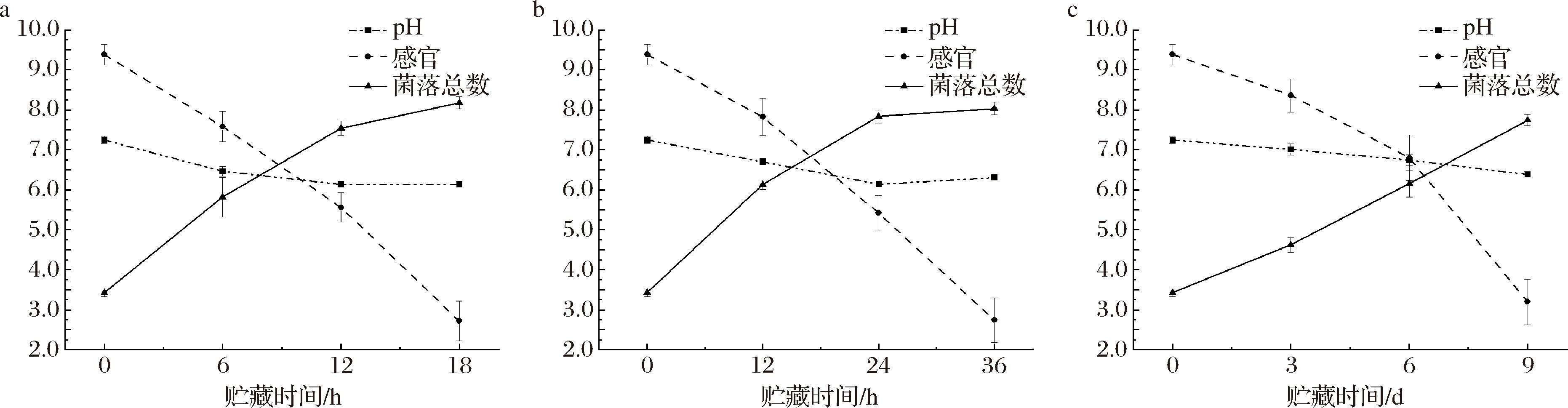 贮藏过程中菌落总数的测定参照GB 4789.2—2022《食品安全国家标准 食品微生物学检验 菌落总数测定》;pH值的测定参照GB 5009.237—2016《食品安全国家标准 食品pH值的测定》。