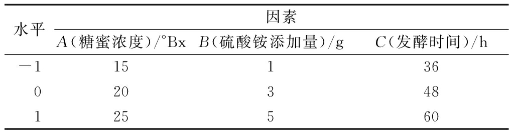 水平因素A(糖蜜浓度)/°BxB(硫酸铵添加量)/gC(发酵时间)/h-115136020348125560