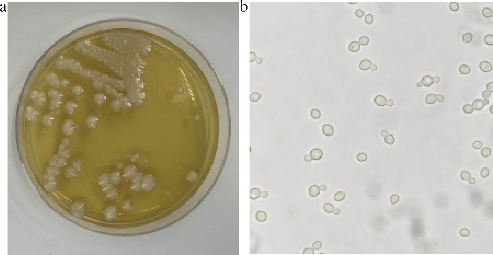 a-酵母菌落形态;b-酵母显微镜形态