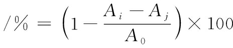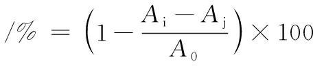 式中:Ai为样品组吸光度;A0为空白组吸光度。