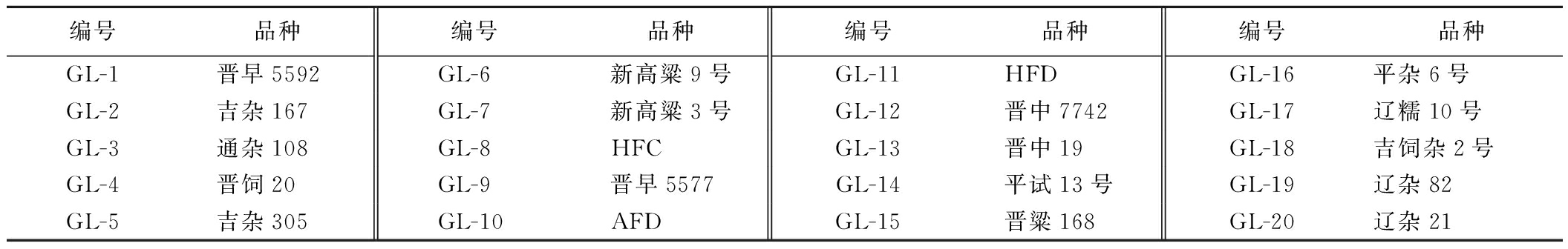 编号品种编号品种编号品种编号品种GL-1晋早5592GL-6新高粱9号GL-11HFDGL-16平杂6号GL-2吉杂167GL-7新高粱3号GL-12晋中7742GL-17辽糯10号GL-3通杂108GL-8HFCGL-13晋中19GL-18吉饲杂2号GL-4晋饲20GL-9晋早5577GL-14平试13号GL-19辽杂82GL-5吉杂305GL-10AFDGL-15晋粱168GL-20辽杂21