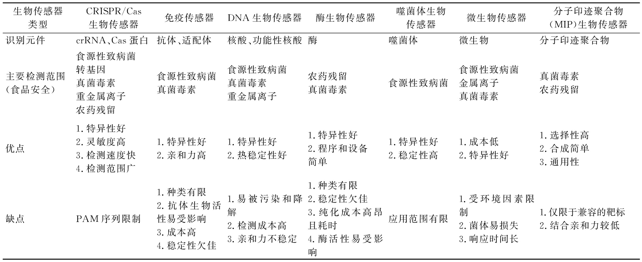 表2 CRISPR/Cas生物传感器与基于不同生物识别元件传感器的比较