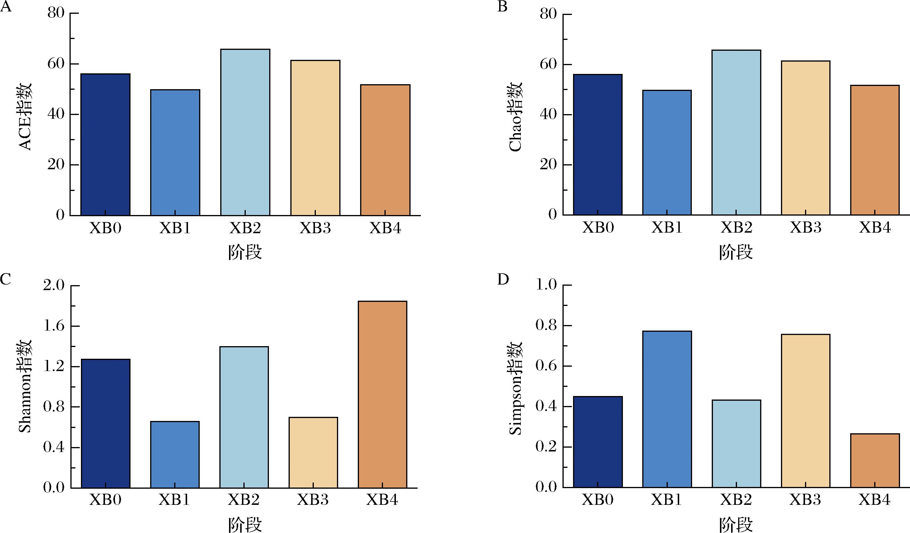 A-ACE指数;B-Chao指数;C-Shannon指数;D-Simpson指数