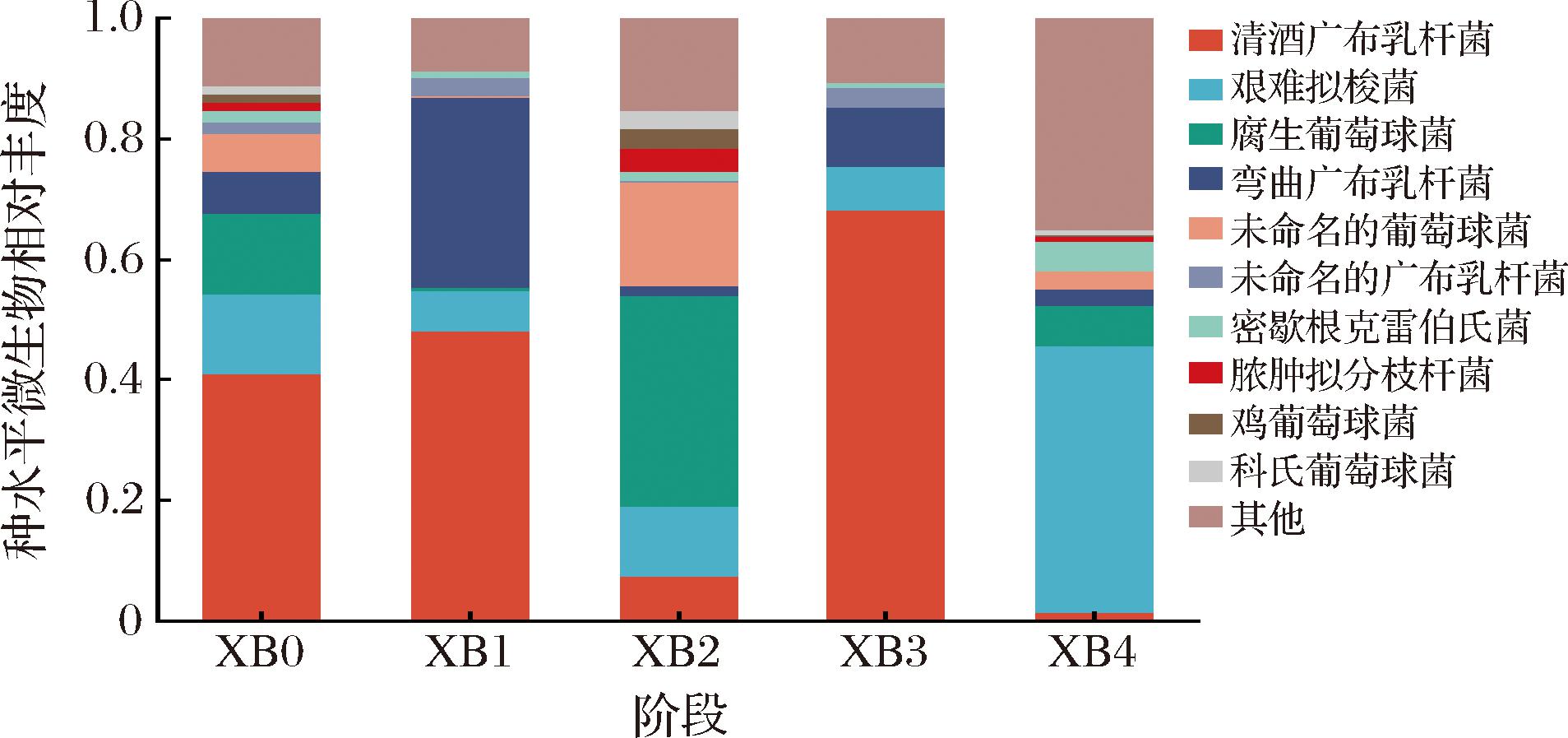 图4 风干贮藏过程中低钠腊肉的种水平微生物相对丰度
