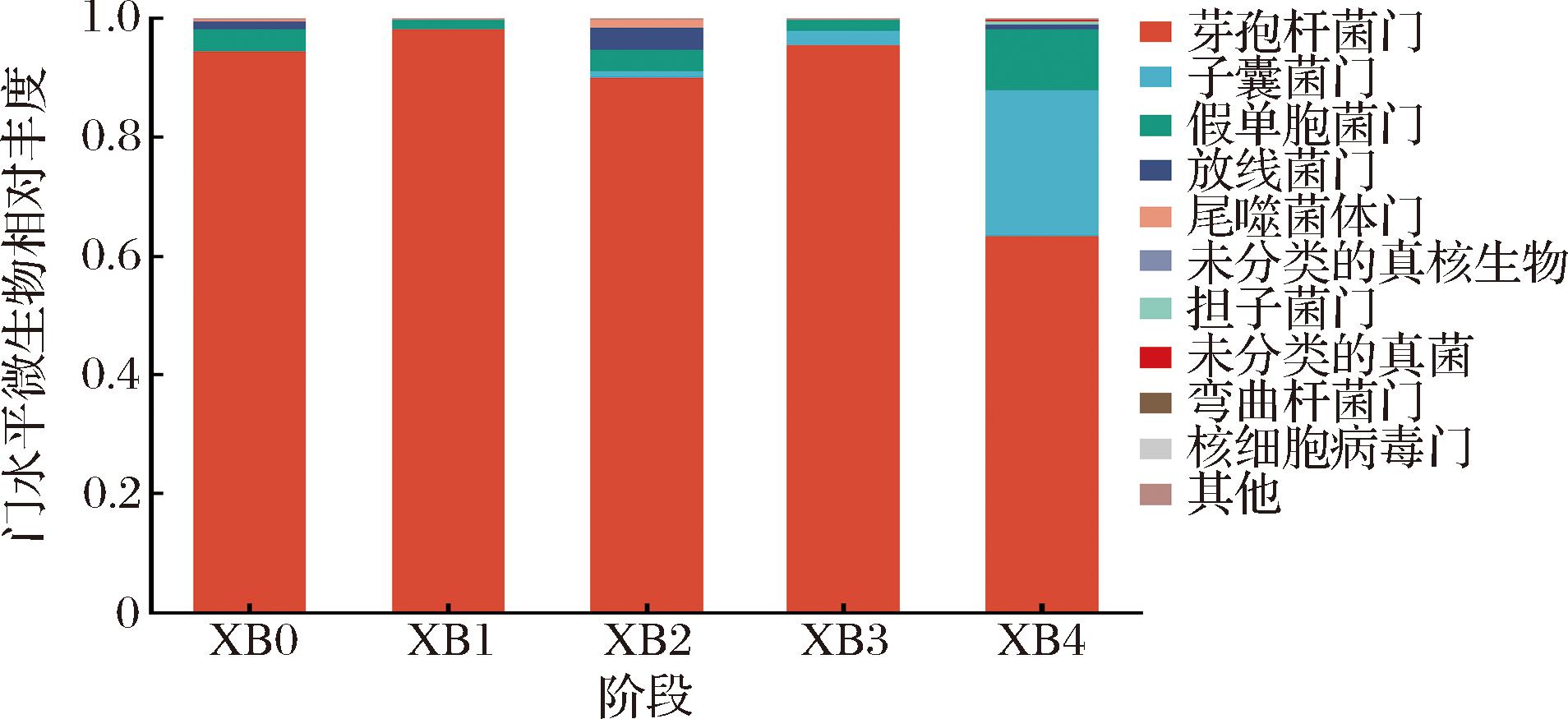 图2 风干贮藏过程中低钠腊肉的门水平微生物相对丰度