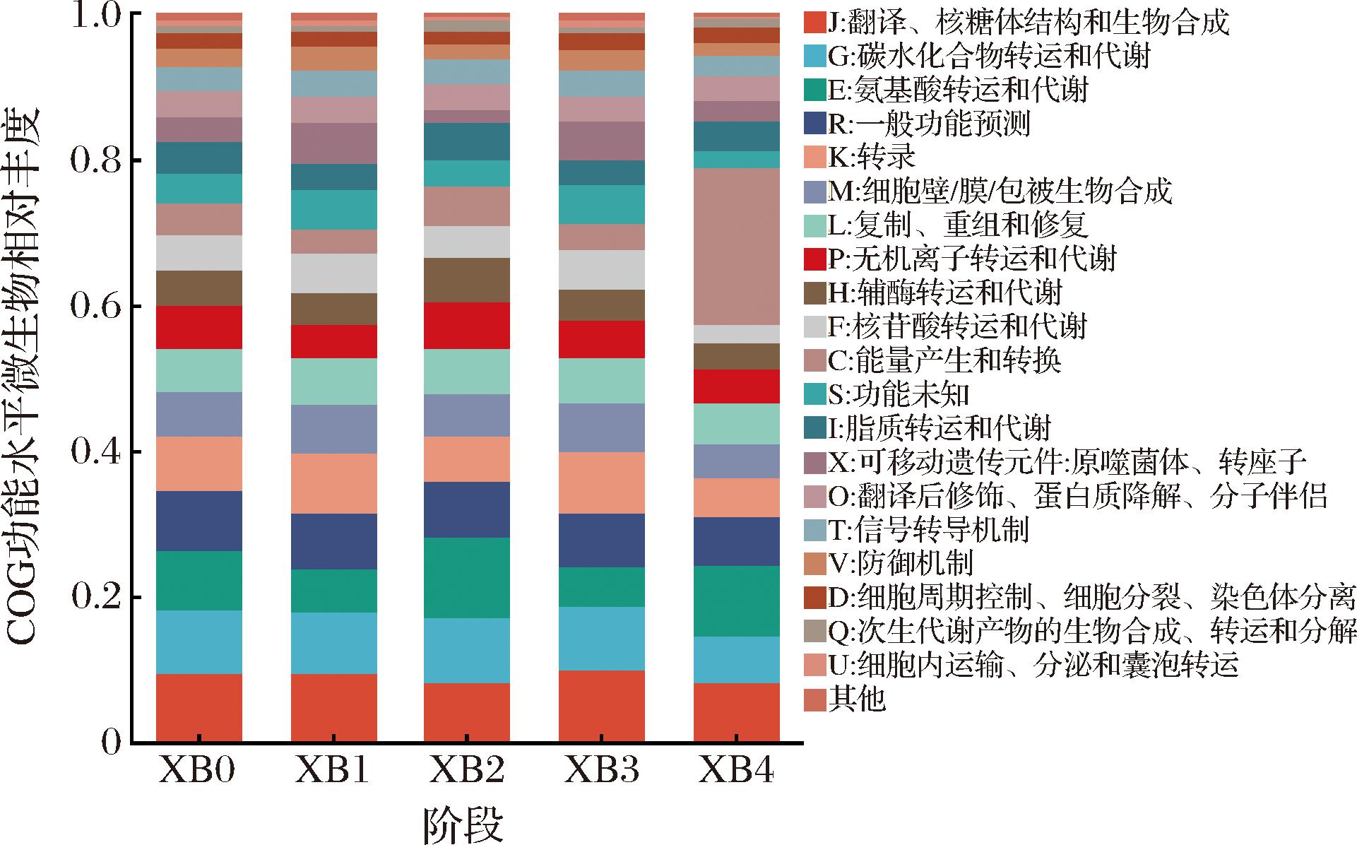 Fig.5 Microbial relative abundance on COG function level in low-sodium cured meat during air-dried storage