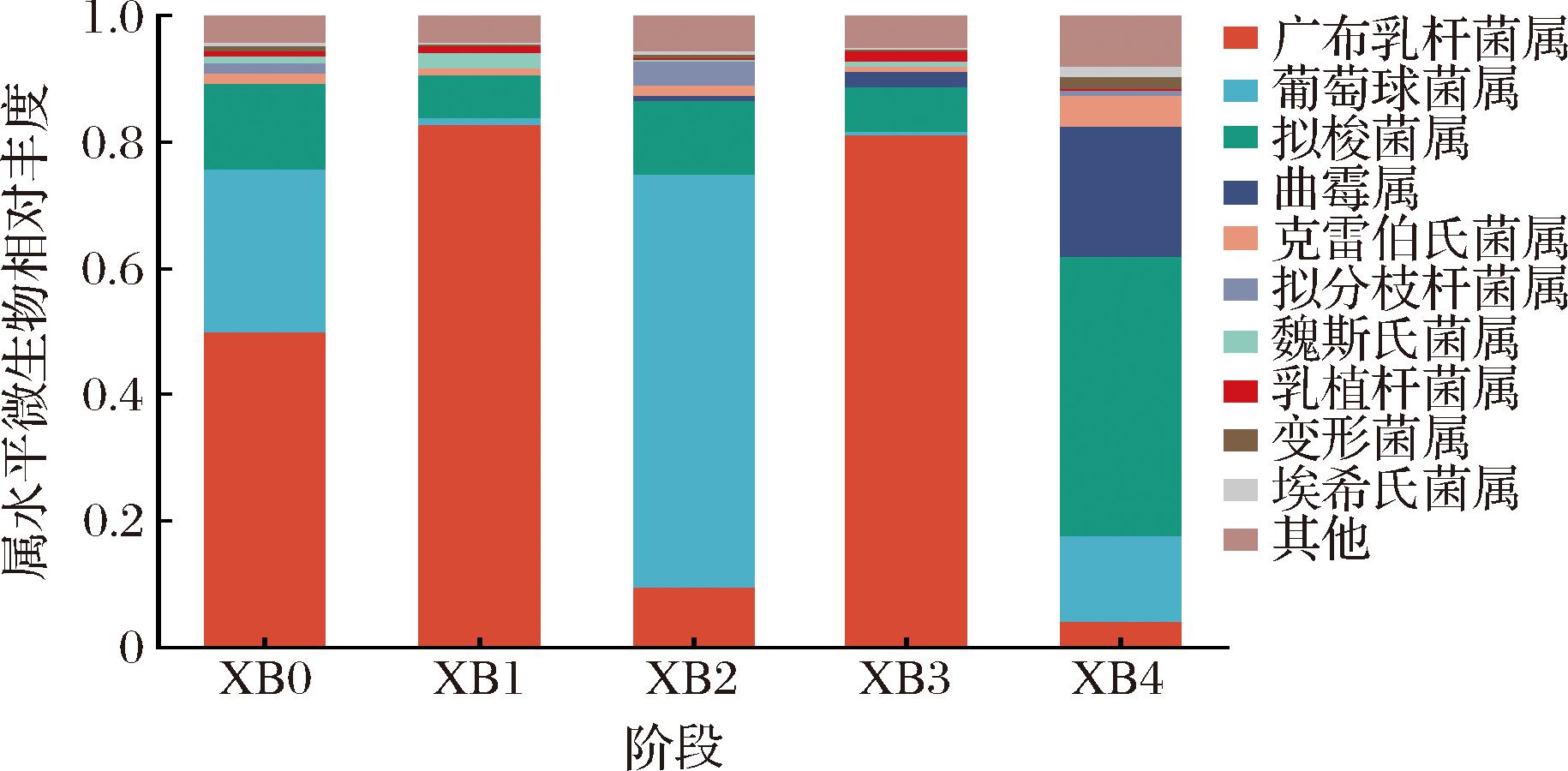 图3 风干贮藏过程中低钠腊肉的属水平微生物相对丰度