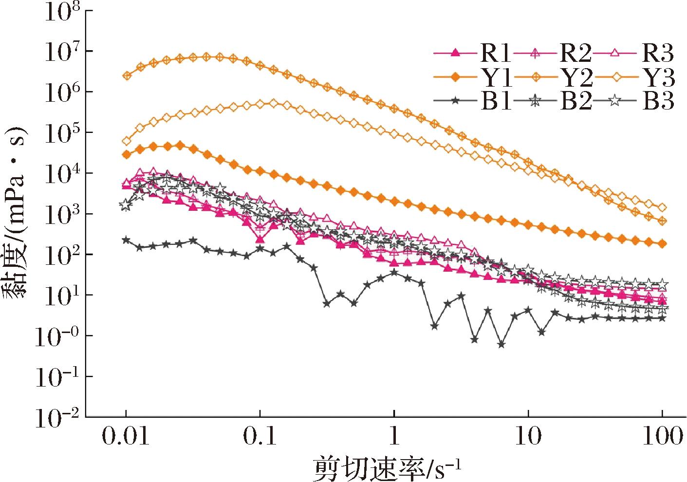 使用流变仪探究样品的流变特性(采用CP-50锥板、BC12.7探头、间距1 mm、25 ℃),可以表征样品体系的内部结构、稳定性、可加工性,为加工生产和实际应用提供理论依据。