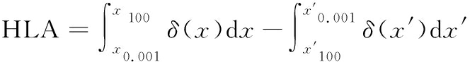 式中:HLA,触变环面积;x,剪切速率;x0.001,剪切速率0.001 s-1;x100,剪切速率100 s-1;δ(x),上行剪切应力曲线;x′,剪切速率;剪切速率