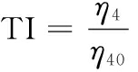 式中:TI,触变指数;η4,在4 s-1下黏度;η40,在40 s-1下黏度;触变指数越大,假塑性越强。