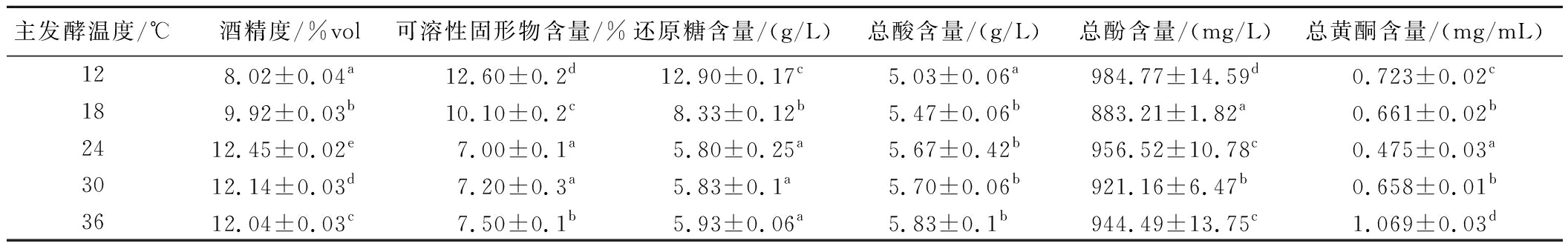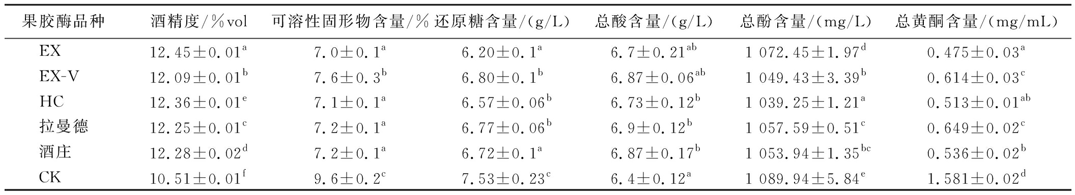 还原糖、总酚的测定参照GB/T 15038—2006《葡萄酒、果酒通用分析方法》进行测定,酒精度、总酸参照GB/T 15038—2006《葡萄酒、果酒通用分析方法》进行测定。