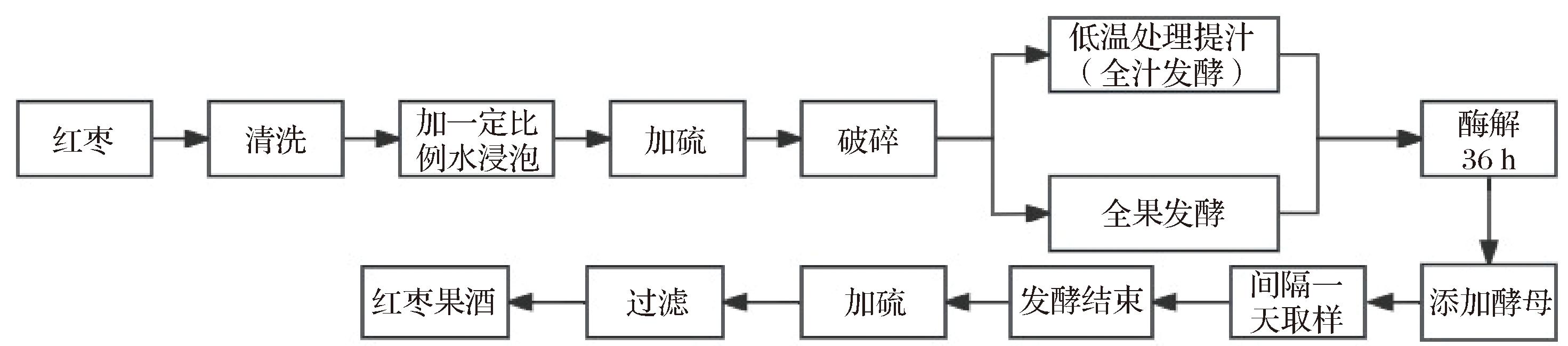 红枣(骏枣),新疆和田;安琪葡萄酒果酒专用酵母(red wine,RW,红葡萄酒),安琪酵母股份有限公司;EX果胶酶、EX-V果胶酶、HC果胶酶、拉曼德果胶酶、酒庄果胶酶,法国LALLEMAND公司。