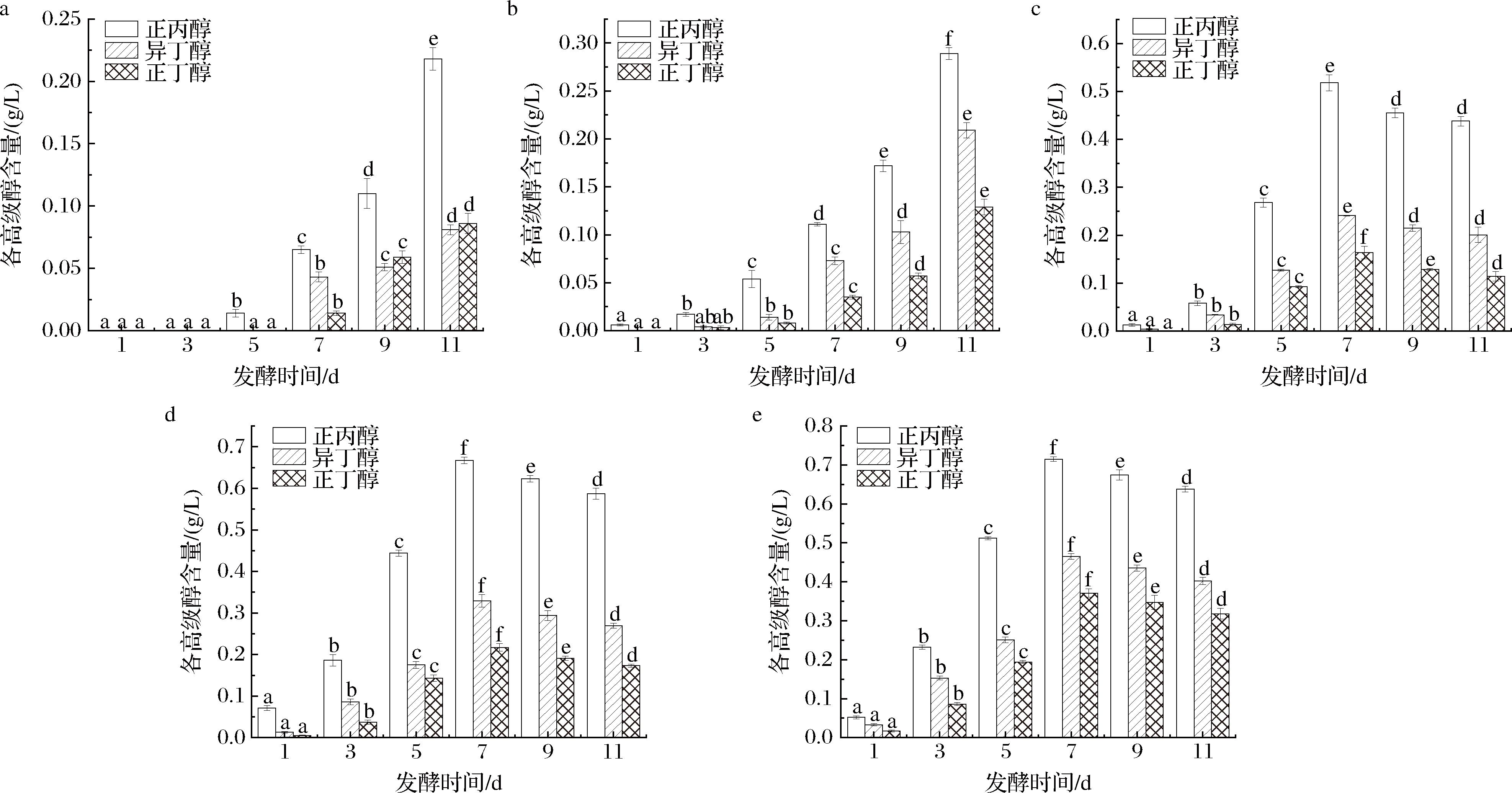 Fig.6 Changes in the content of higher alcohols during fermentation of jujube wine under different fermentation methods