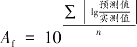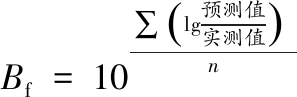 采用Af、Bf、均方根误差(root mean square error,RMSE)和R2,4个参数评价模型拟合程度。其中,Af值越小表示模型越准确,Bf值越接近于1表示模型的拟合度就越高;R2越接近于1,RMSE越小,模型的拟合度越好[20]。Af、Bf、RMSE的计算如公式(5)~公式(7)所示。