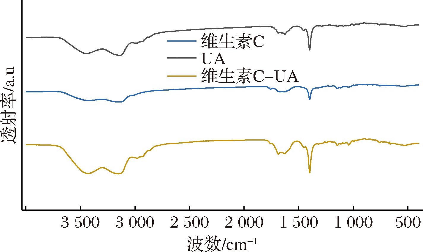 图6 维生素C、UA、维生素C-UA的傅里叶红外光谱图