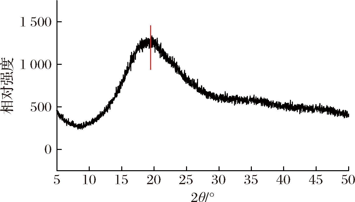 在19°~22°范围内的衍射峰是纤维素的特征结晶区[18]。如图9所示,POSDF在2θ约为20°处有一个明显的衍射峰,显示出典型的纤维素Ⅰ晶体构型,通过Jade 6.0软件处理得出其结晶度为34.85。研究表明,膳食纤维结晶度的高低直接影响其微观结构的致密程度,结晶度低则膳食纤维结构松散[19]。POSDF的结晶度不高则其结构相对松散,这与上文扫描电镜的结果互相印证。
