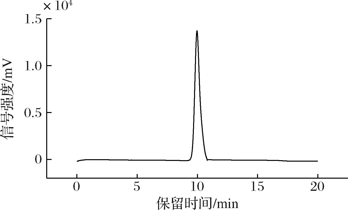 如图3所示,分子质量谱图显示出一个单一且对称的峰,表明POSDF为分子质量均一的多糖类物质。通过计算可知,POSDF的分子质量为3 381 Da,重均分子质量为4 024 Da,多分散性为1.19。
