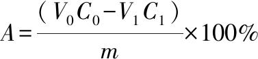 式中:A,消耗的NaOH,mmol/g;V0,NaOH的体积,mL;C0,NaOH浓度,mol/L;V1,消耗HCl溶液的体积,mL;C1,HCl溶液浓度,mol/L;m,CM-ALVP质量,g。