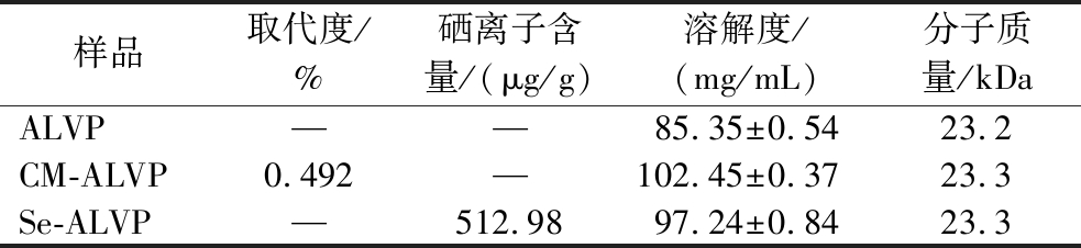 表1 ALVP、Se-ALVP和CM-ALVP的取代度、溶解性和分子质量