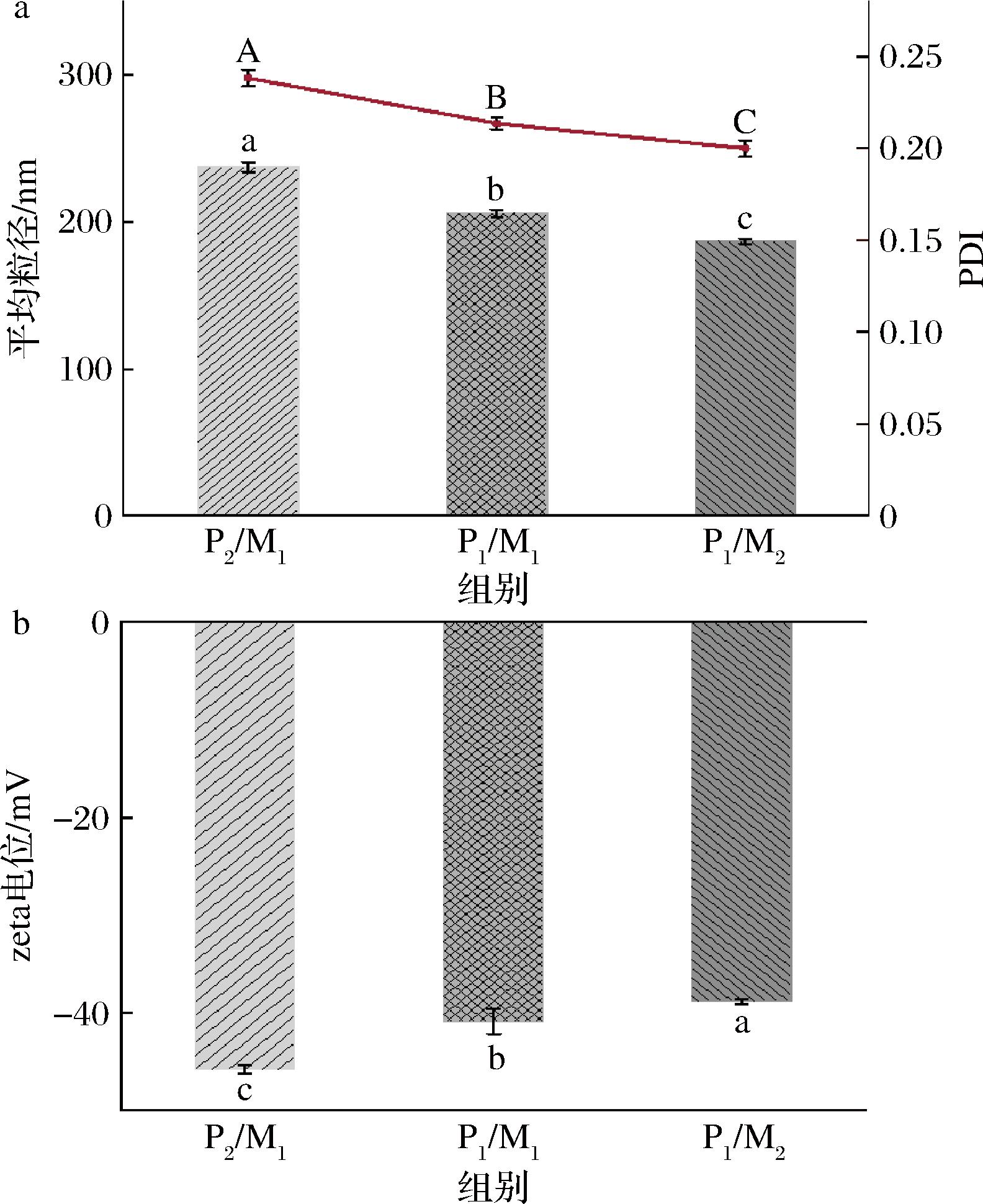 a-平均粒径和PDI;b-zeta电位