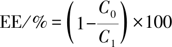 式中:C0,未包封的辅酶Q10含量,即下层沉淀中辅酶Q10的测定含量,mol/L;C1,NLCs中辅酶Q10的总含量,mol/L。