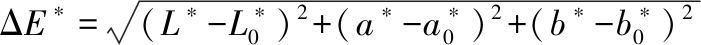 CIE颜色参数L*、a*和b*分别代表亮度、红绿度和蓝黄度。样品的色差(ΔE)通过公式(1)计算: