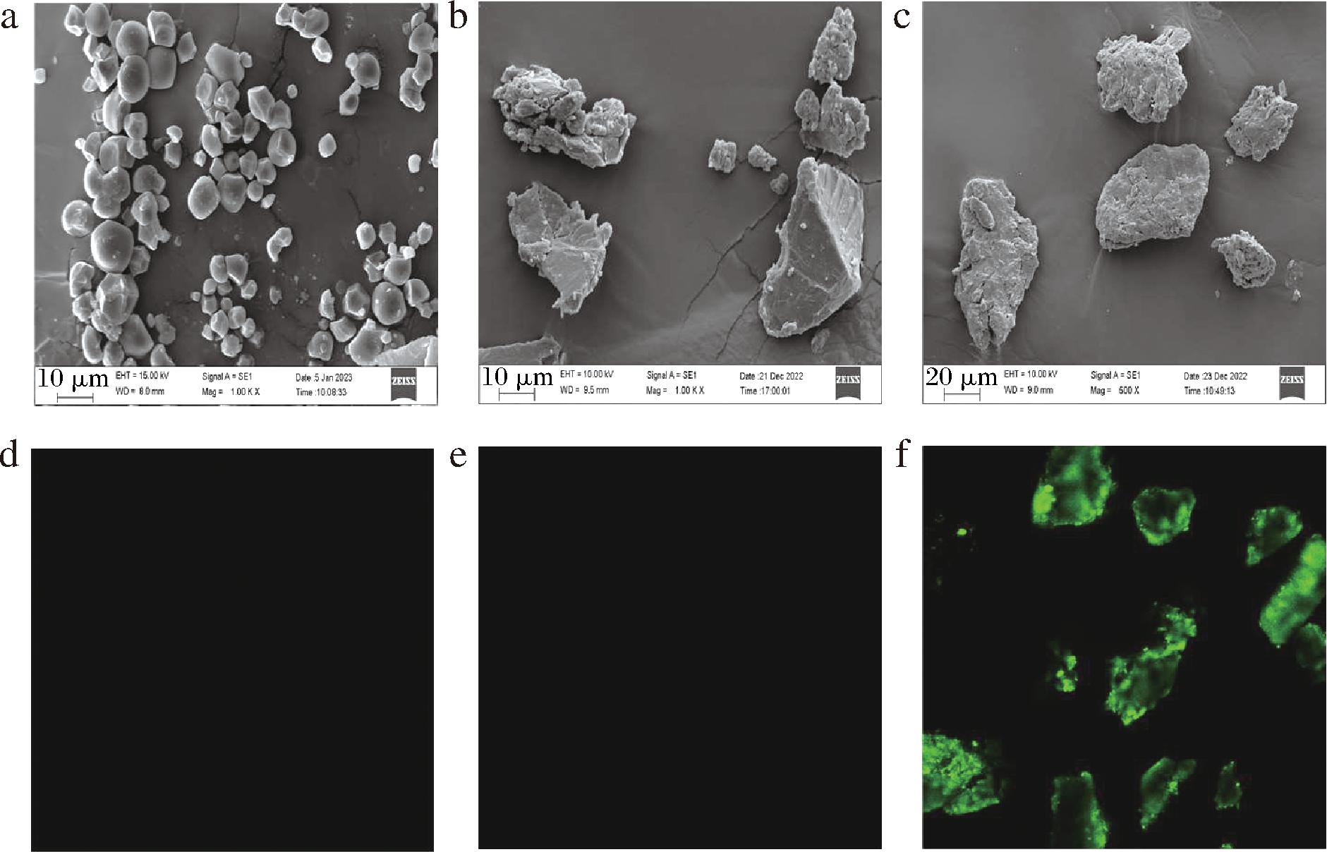 黄酮多酚类物质具有自发荧光性质,所以通过CLSM观察其在淀粉中的分布。如图1-d~图1-f所示,在单荧光通道视野下,KS和Control颗粒中均未出现荧光结构,KS-CSFE具有较强的绿色荧光。这个现象归因于板栗种皮提取物中富含黄酮多酚类化合物,与先前报道的莲子淀粉-茶多酚复合物的荧光结构一致[14],荧光观察的结果表明,黄酮多酚类物质在淀粉中的分布是均匀的。黄酮多酚类物质被有效包埋。