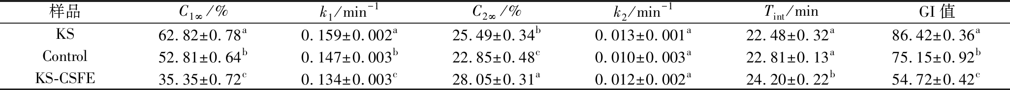 表5 KS、Control和KS-CSFE的消化动力学常数和GI值