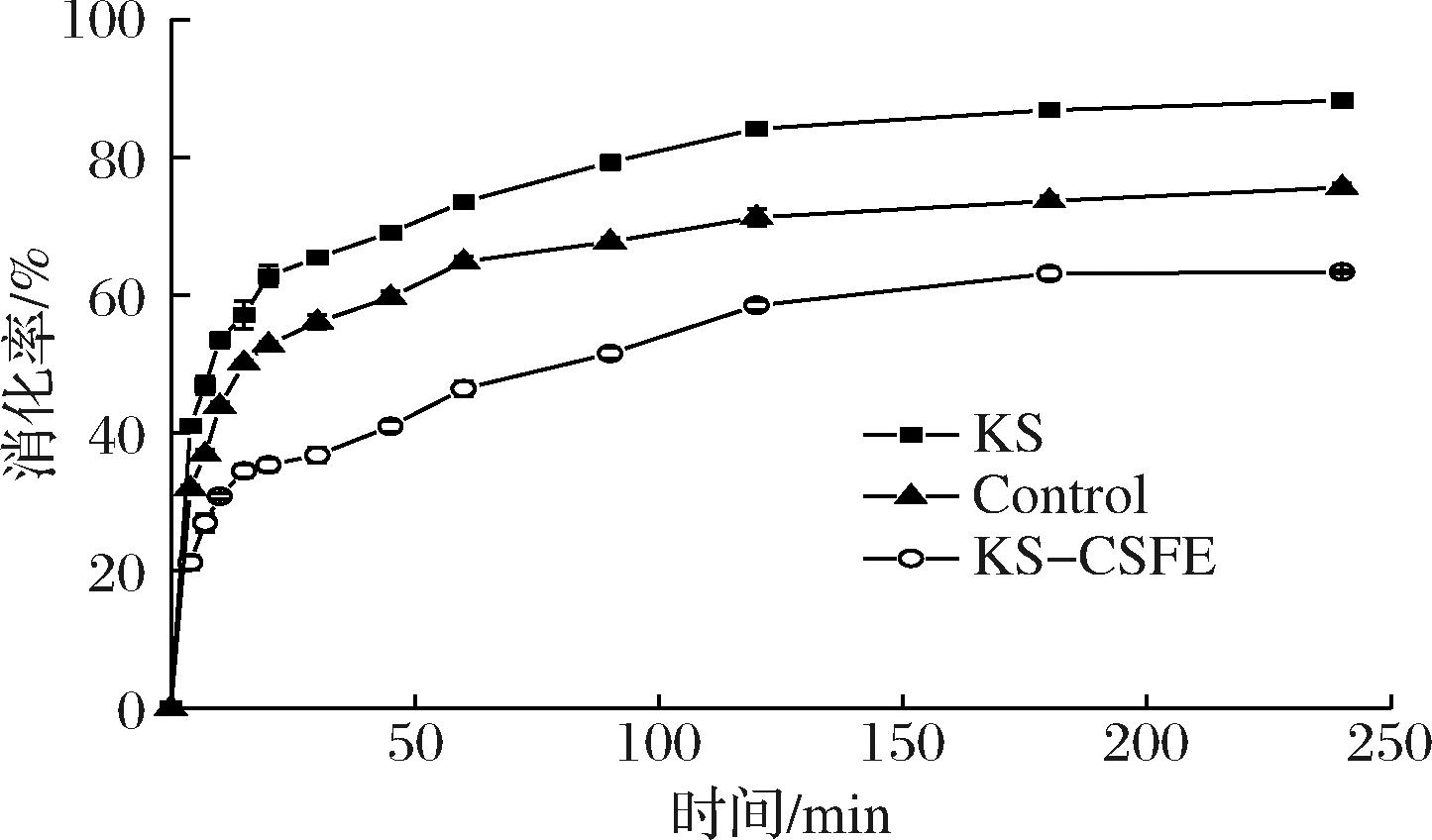Fig.4 Digestion curves of KS, Control, and KS-CSFE