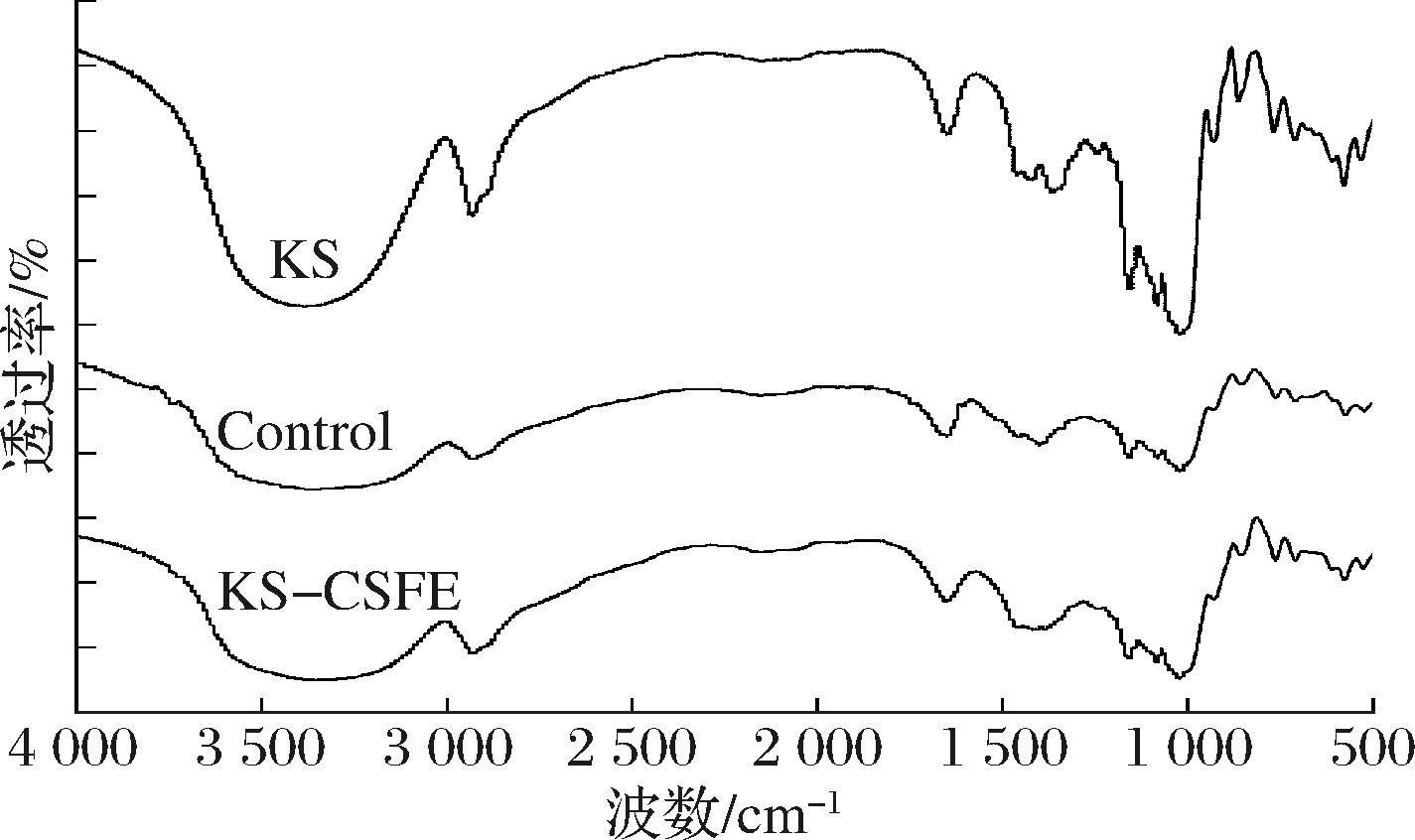 Fig.2 Infrared spectra of KS, Control, and KS-CSFE