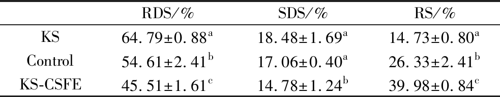 表4 KS、Control和KS-CSFE的RDS、SDS和RS含量