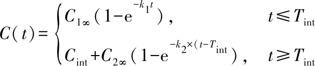 式中:Ct,t时刻淀粉的水解率,%;C∞,淀粉消化最终平衡时的水解率,%;HI,水解指数(hydrolysis index,HI);k,一阶动力学速率常数,min-1;t,反应时间,min;Tint,两条直线相交的时间,min;Cint,Tint时的水解率,%。