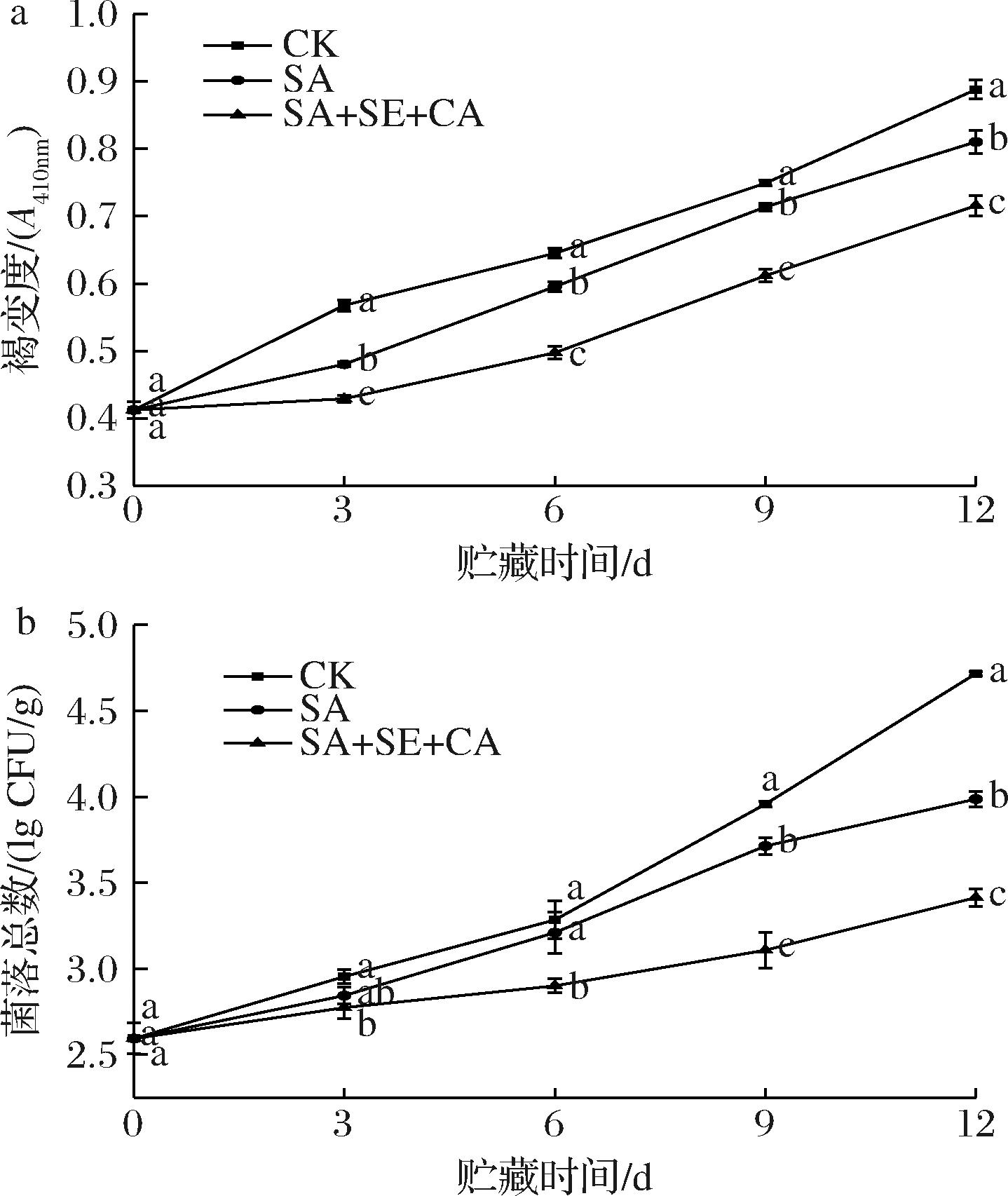 a-褐变度;b-菌落总数