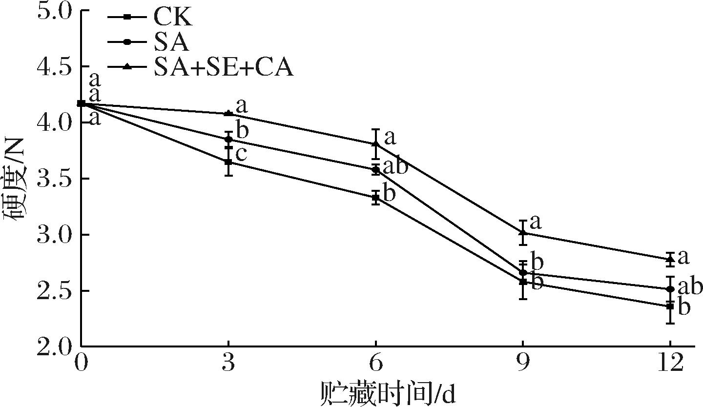 图2 复合涂膜处理对鲜切荒漠肉苁蓉硬度的影响