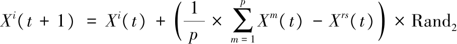 式中:t为当前迭代次数;Xi(t)为第i个个体在第t次迭代的位置;Xi(t+1)为第i个个体在第t+1次迭代的位置;p为从所有搜索个体中随机选择的2~5个小群体中的红嘴蓝喜鹊的数量;Xm为随机选择的第m个个体;Xi为第i个个体;Xrs(t)为当前迭代中随机选择的个体;Rand,0~1的随机数;q为集群在探索食物时的群体数量,介于10~n。