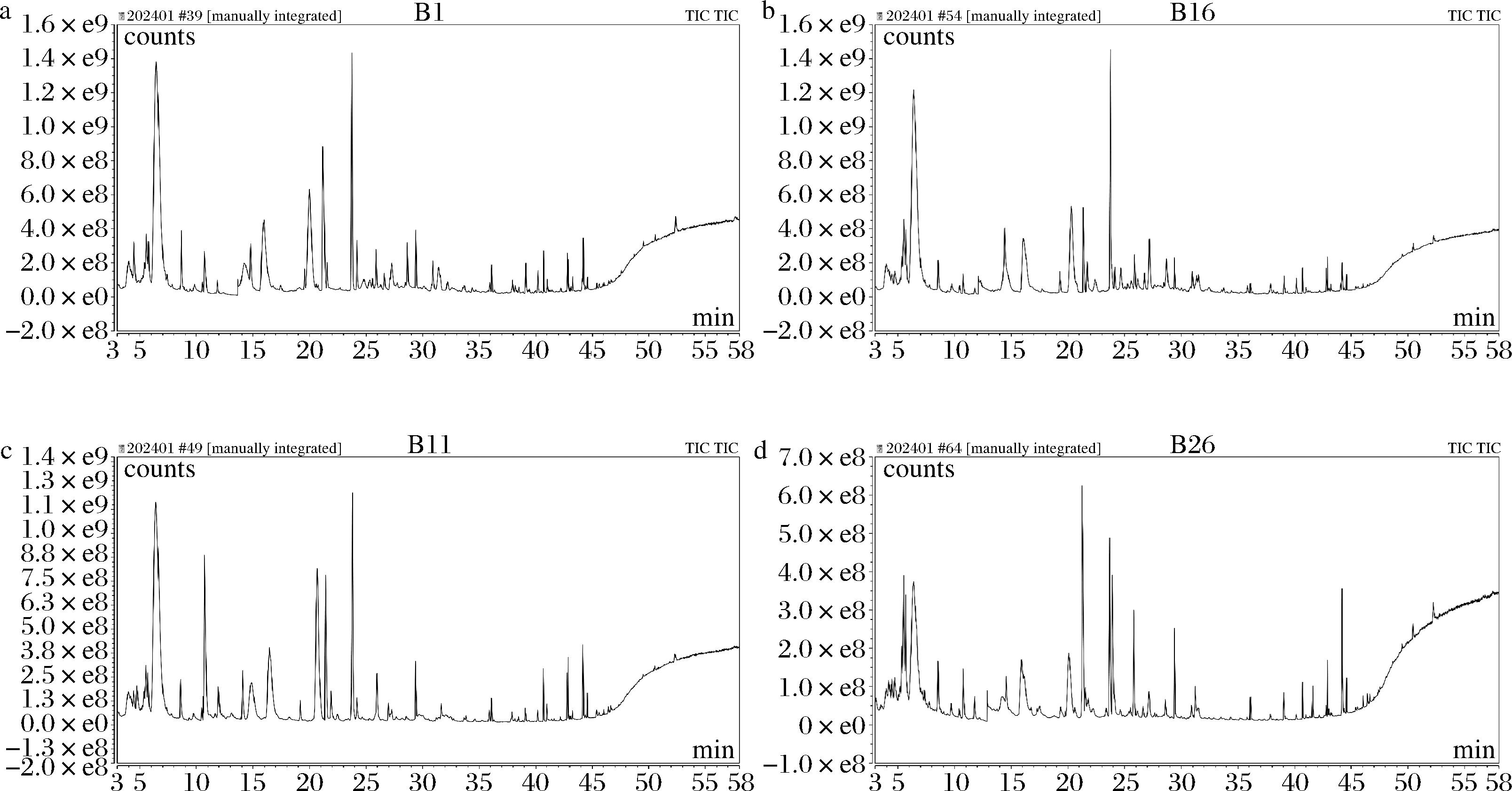 a-炖煮对照组;b-炖煮实验组;c-烤制对照组;d-烤制实验组