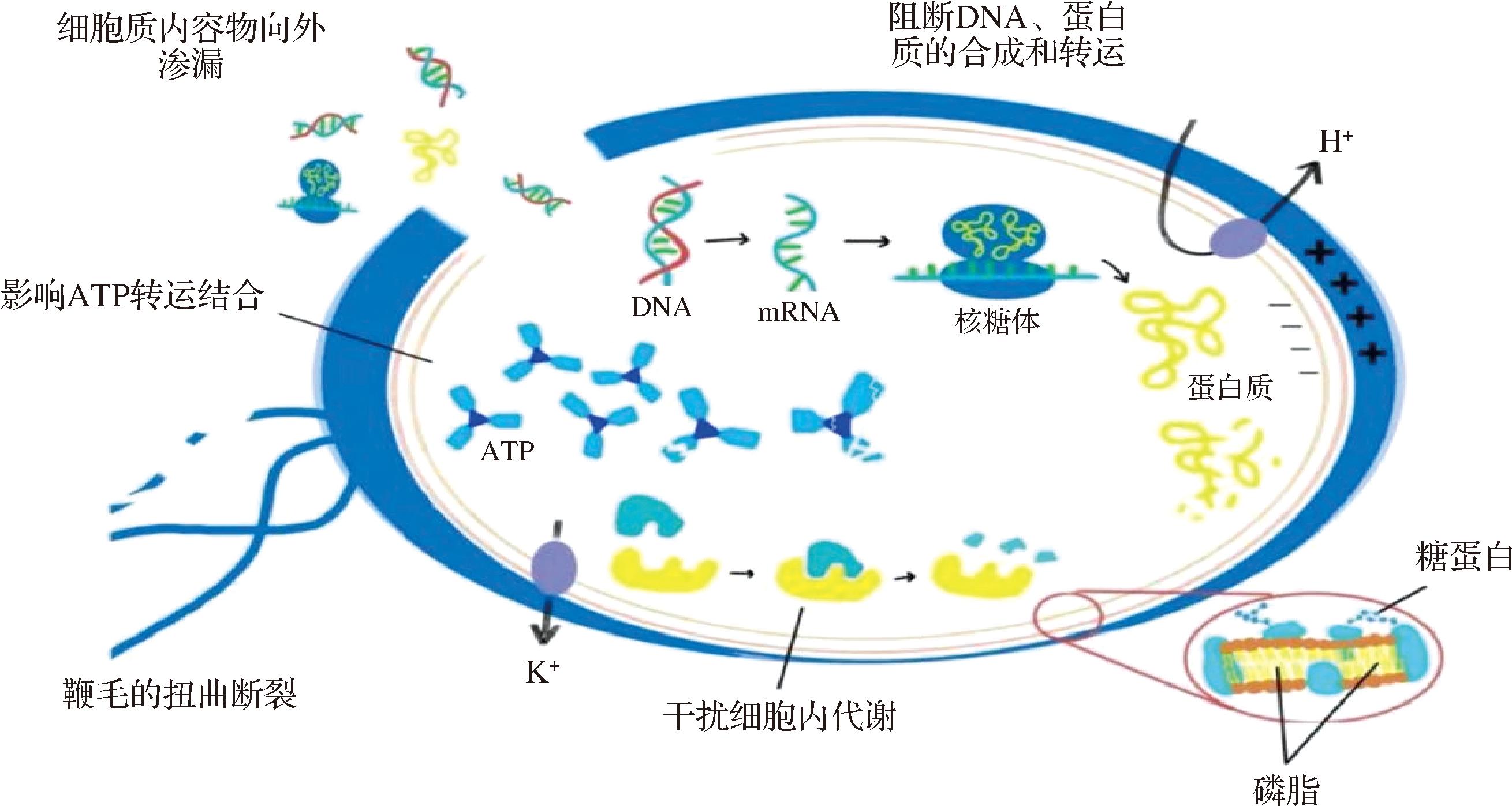 LM病暴发与牛奶和奶制品、肉类和肉制品以及新鲜农产品有关。2018年,南非出现了有史以来最大的LM食源性疾病暴发事件,食用被污染的肉干香肠导致937人感染,造成193人死亡[6]。2011年,美国科罗拉多州爆发了一次近90年来最严重的食源性疾病,导致147人感染LM,其中有33例死亡和1例流产,该疫情与被LM污染的哈密瓜密切相关[7]。因此,为保证食品加工和供应的安全,使用抗生素、消毒剂等控制LM的生长和繁殖,成为了目前最为广泛的手段。但长此以往,不仅导致细菌耐药性增强,还可能在食品中残留,对人体健康构成潜在威胁[8]。