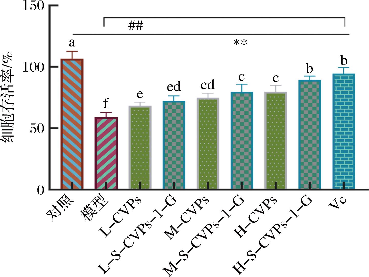 图3 CVPs及S-CVPs-1-G对氧化损伤HepG2细胞的修复作用