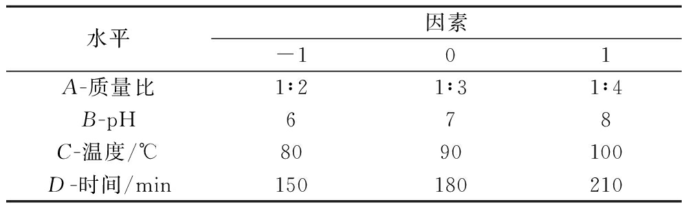 水平因素-101A-质量比1∶21∶31∶4B-pH678C-温度/℃8090100D-时间/min150180210