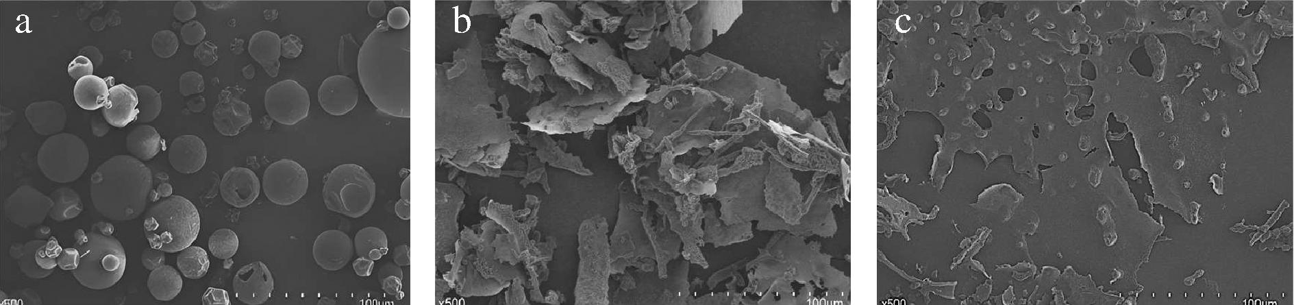 如图5所示,DX为表面平整光滑的球状,PPP为碎片化薄片状,而PPP-DX表面呈现出凹凸不平、多孔的结构,球状的DX附着在片状的PPP上,且碎片状PPP逐渐开始融合,表观形态逐渐从碎片状变为有孔隙的片状。这种现象也证实了PPP与DX之间发生了偶联反应从而引起结构变化,该结果与傅里叶红外光谱、荧光光谱以及圆二色谱的结果一致。