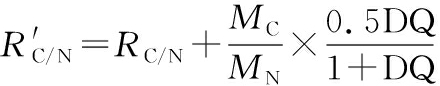 设季铵度为DQ,1∶1的PGA-CTS分子式可表示为C5.5H9NO3.5,PGA-CTS-GTA分子式可表示为(C5.5H9NO3.5)1-DQ,(C11.5H21N2O3.5Cl)DQ,则有如下关系,如公式(2)~公式(4)所示:
