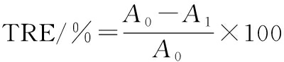 式中:A1、A0,处理后藻液液面下2 cm、原藻液液面下2 cm的吸光度。