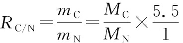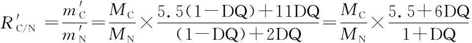 将干燥的PGA-CTS和PGA-CTS-GTA粉末用元素分析仪C/N模式测量C、N元素含量。通过反应前PGA-CTS的CN质量比与反应后干燥产物PGA-CTS-GTA的CN质量比可计算季铵化程度DQ,其计算过程大致如下:设PGA-CTS和PGA-CTS-GTA的碳氮比分别为RC/N和