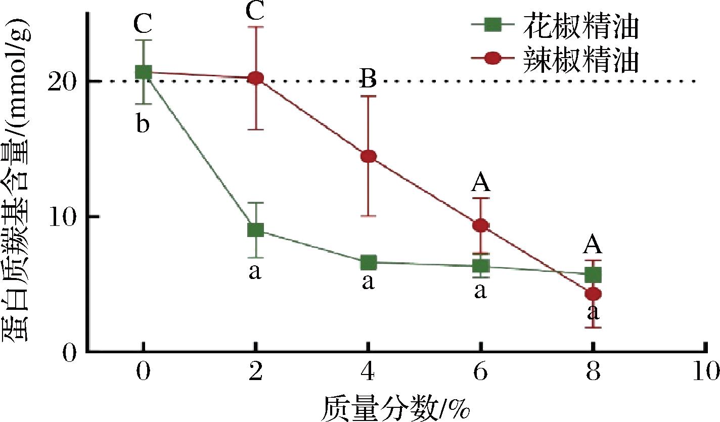2.4.1 花椒和辣椒精油对猪里脊蛋白质羰基的影响